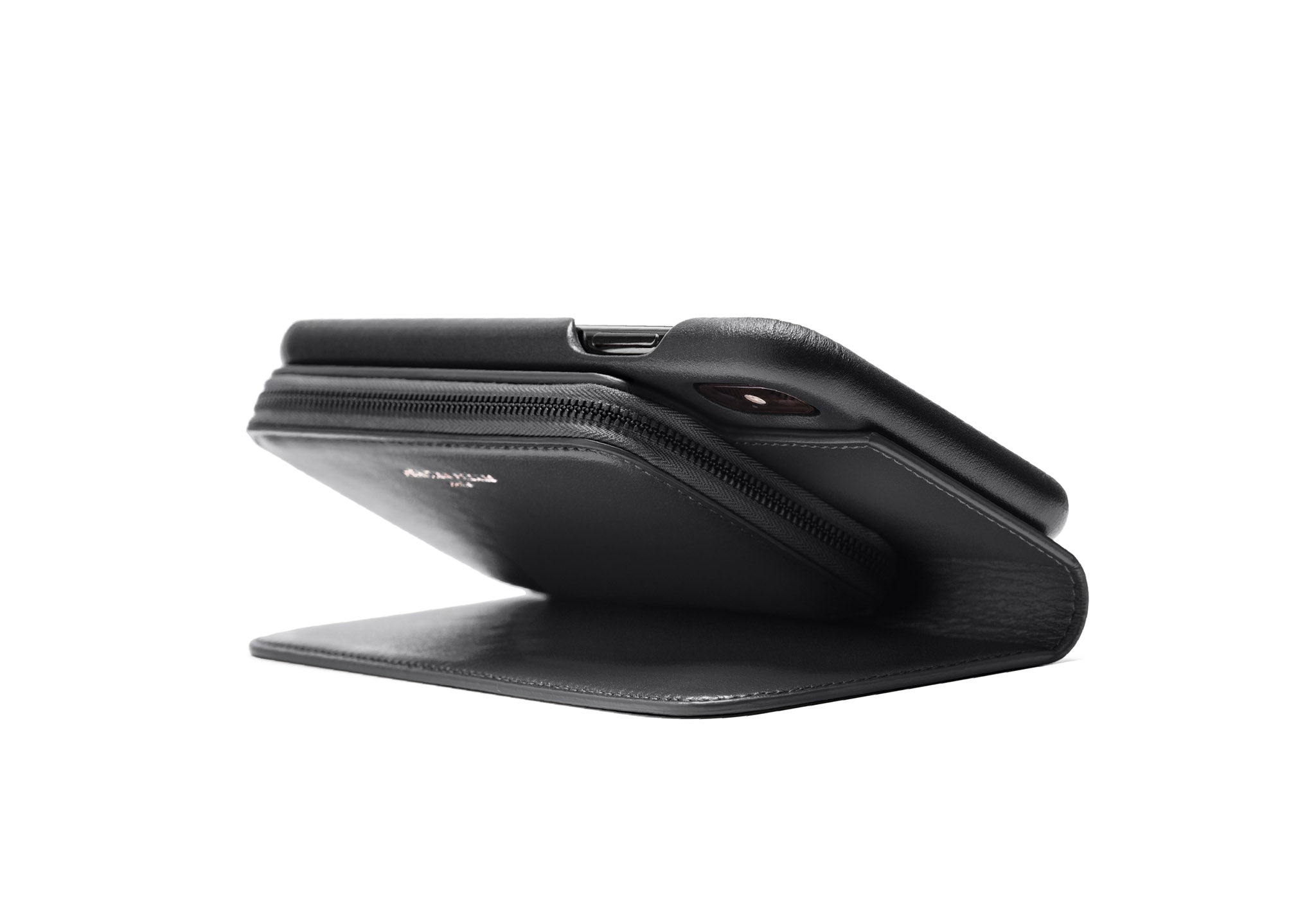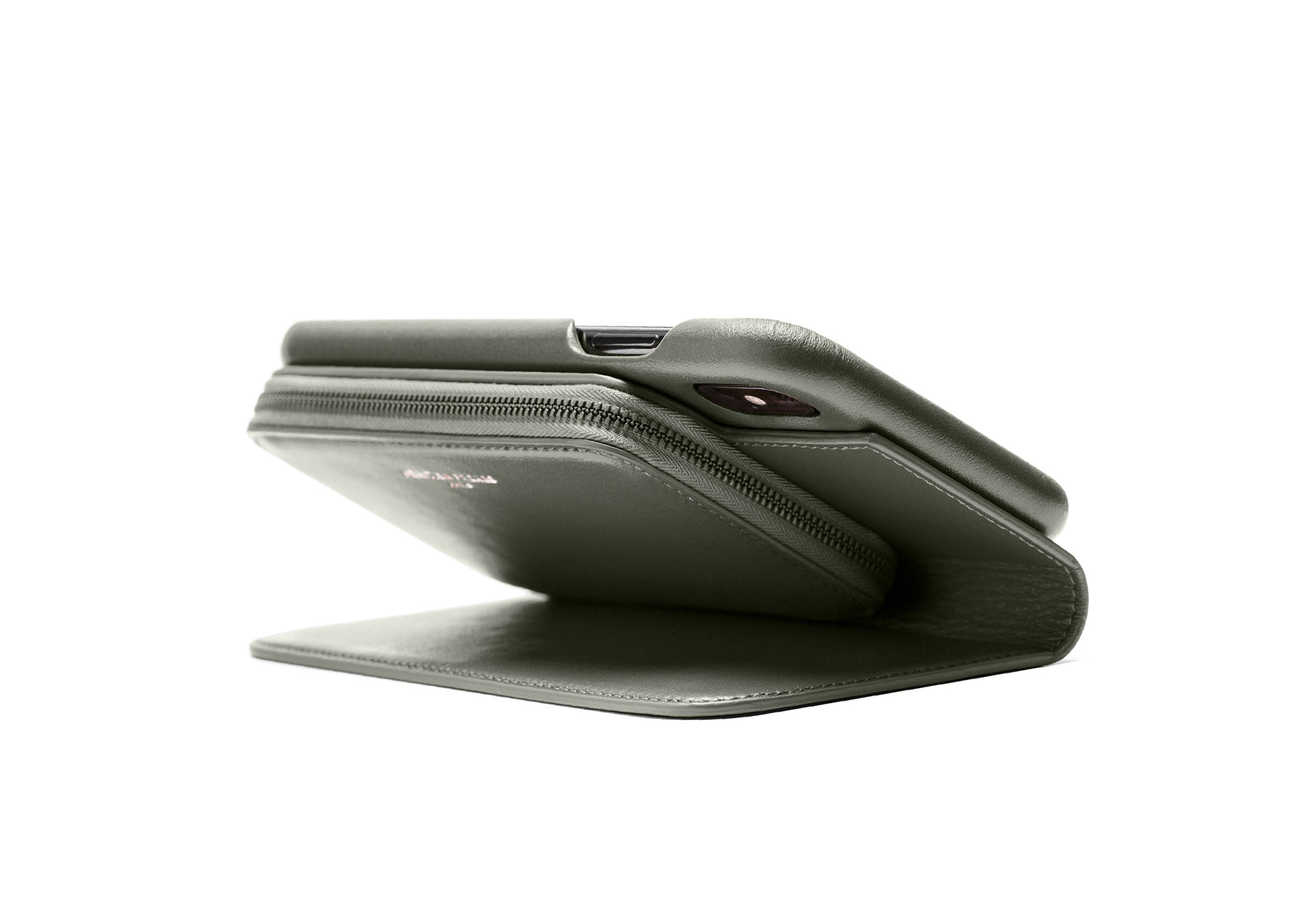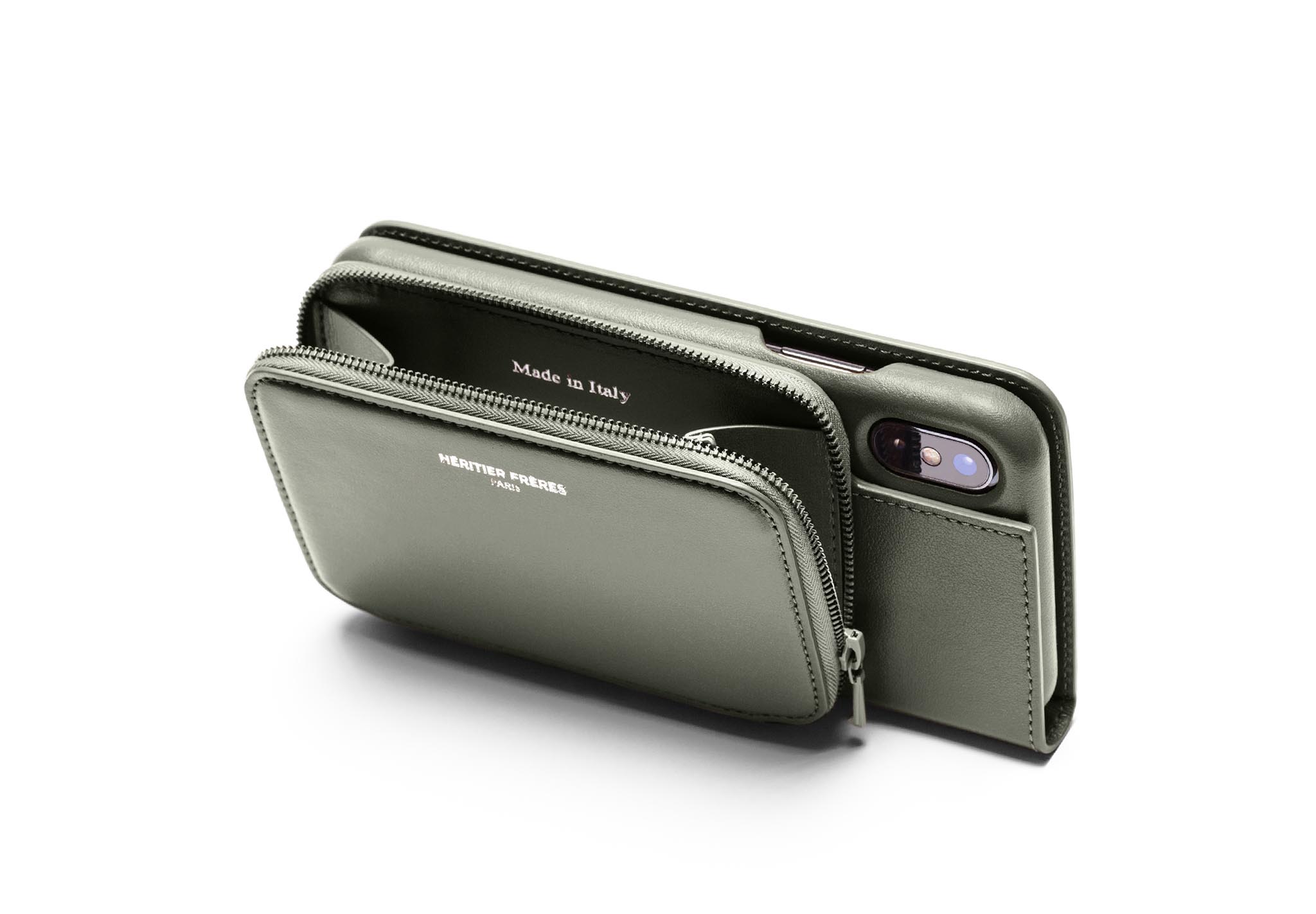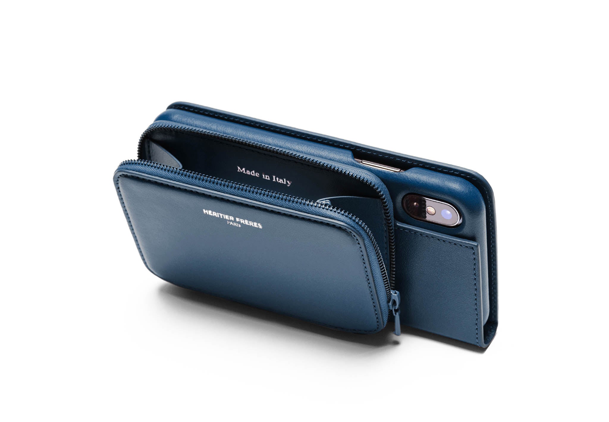 Ce portefeuille réinventé fait un avec la coque pour téléphone gainée de cuir. Sa pochette zippée sécurise son contenu. L’essentiel du quotidien est compilé dans un seul et même accessoire : votre téléphone portable, vos cartes de crédit & cartes d’identité, votre clé, votre permis de conduire, des billets ou pièces de monnaie.