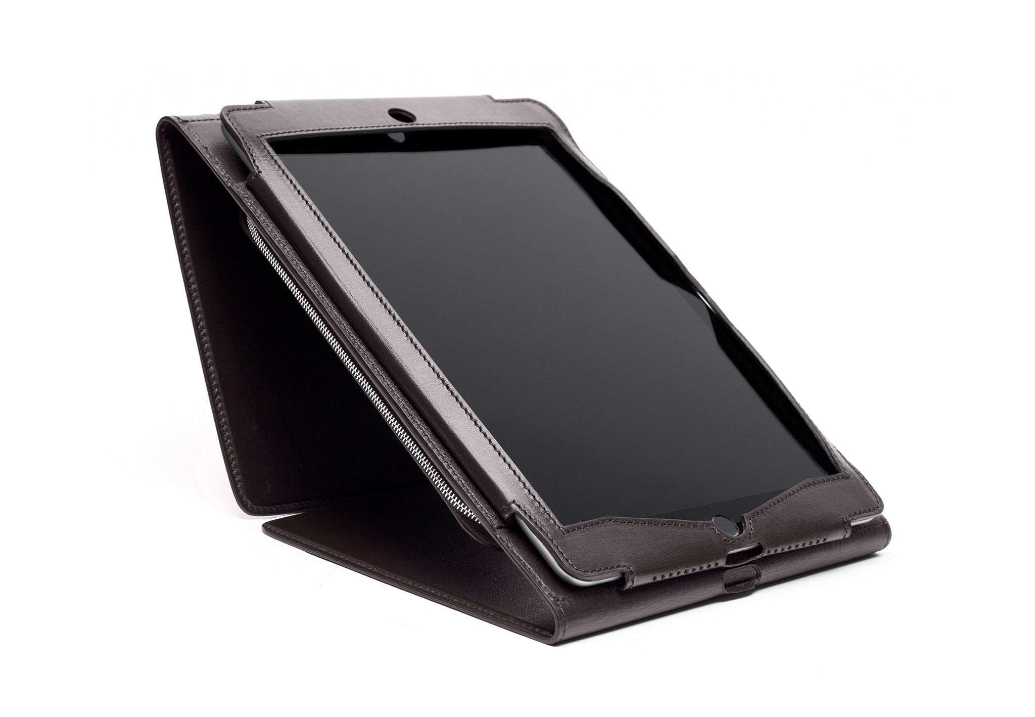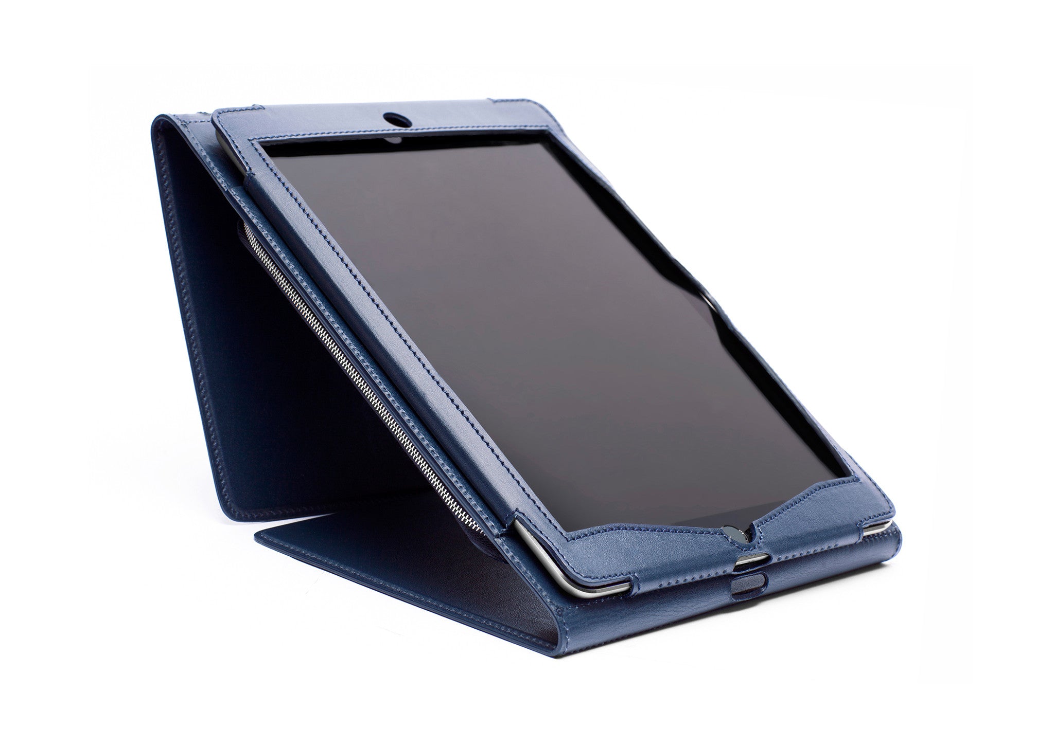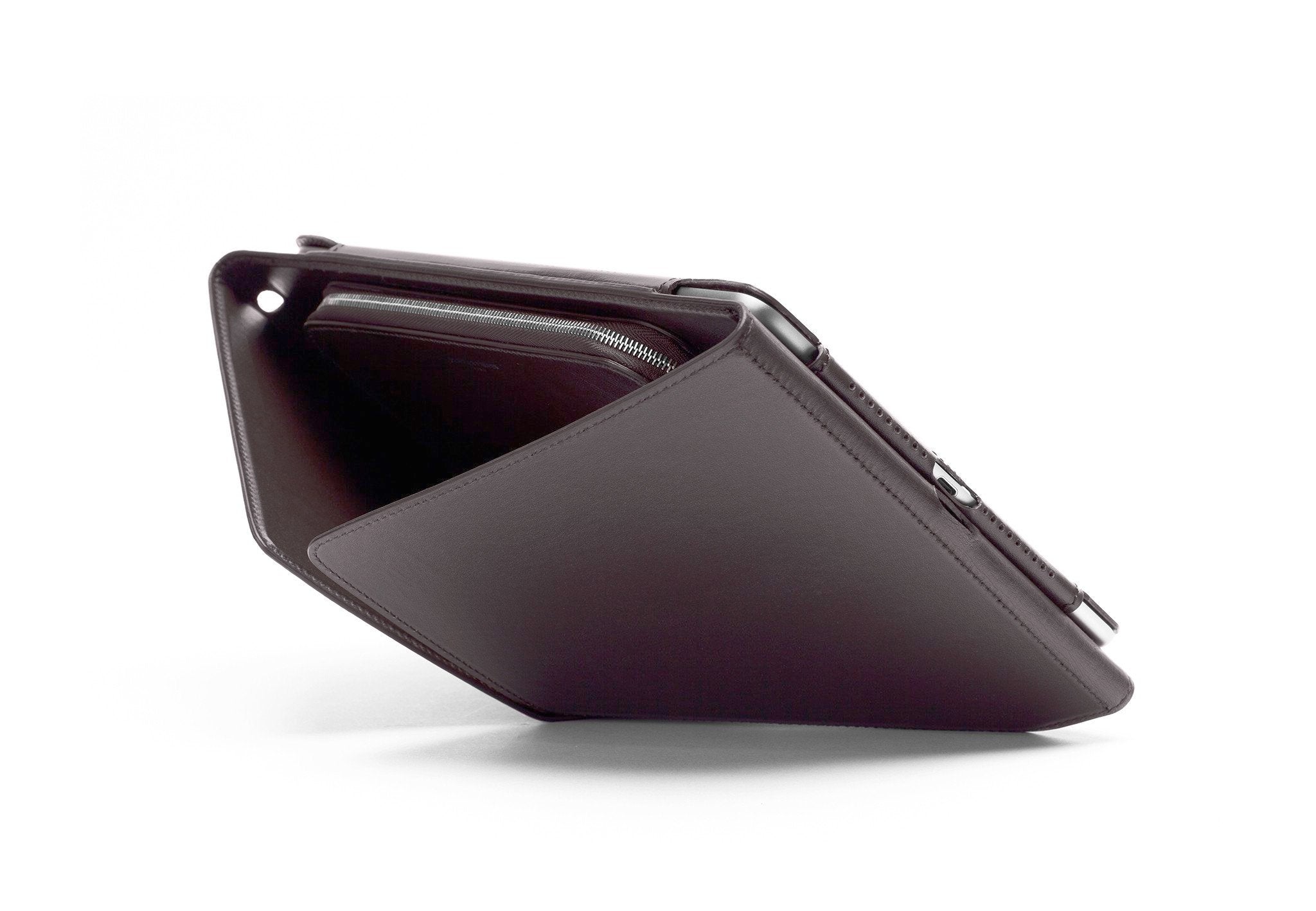 L’étui Andy pour iPad propose plusieurs niveaux de lectures : Un étui de protection pour votre tablette, un socle intégré de visionnage et une grande poche réunis dans un objet de haute fabrication maroquinière.