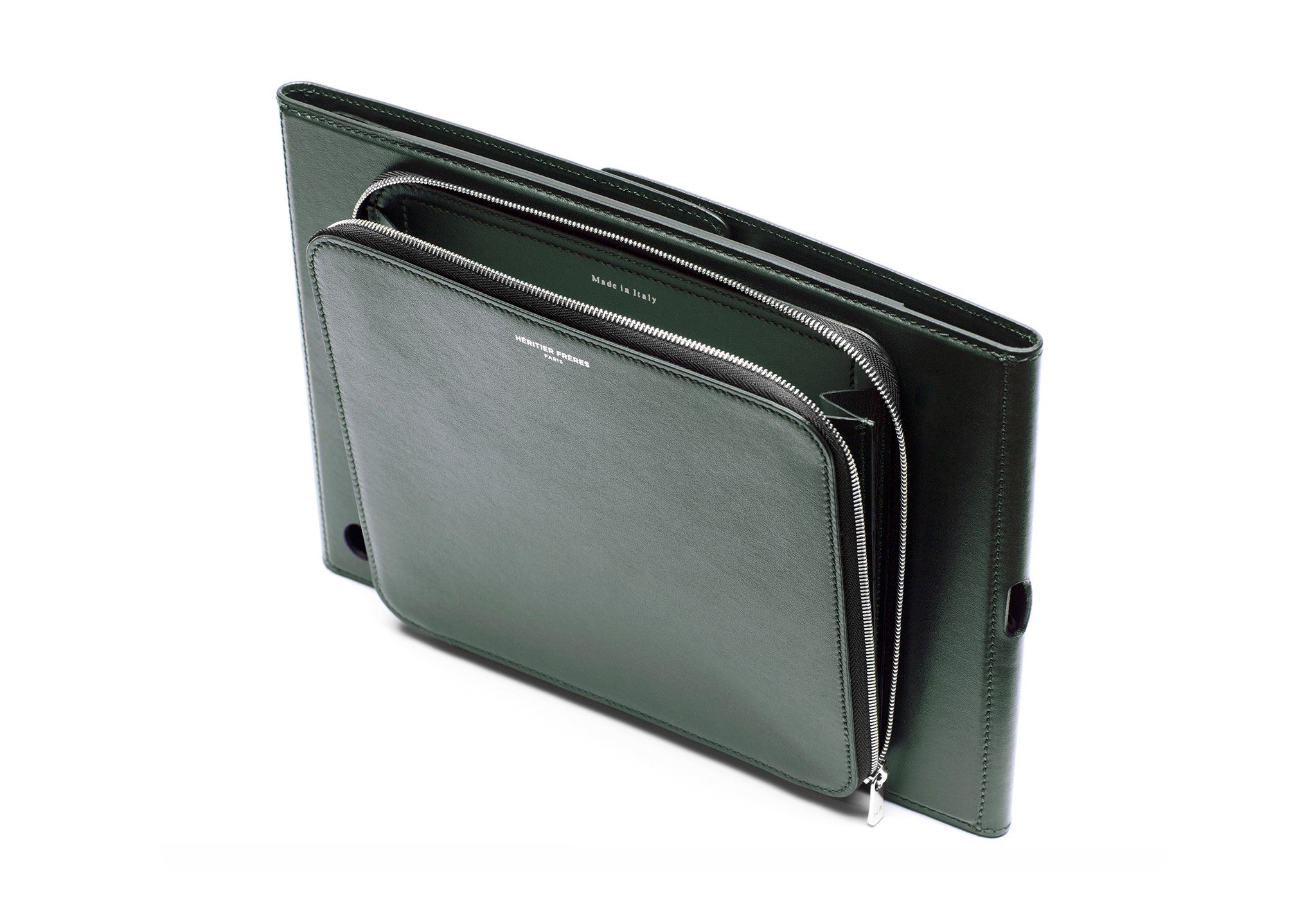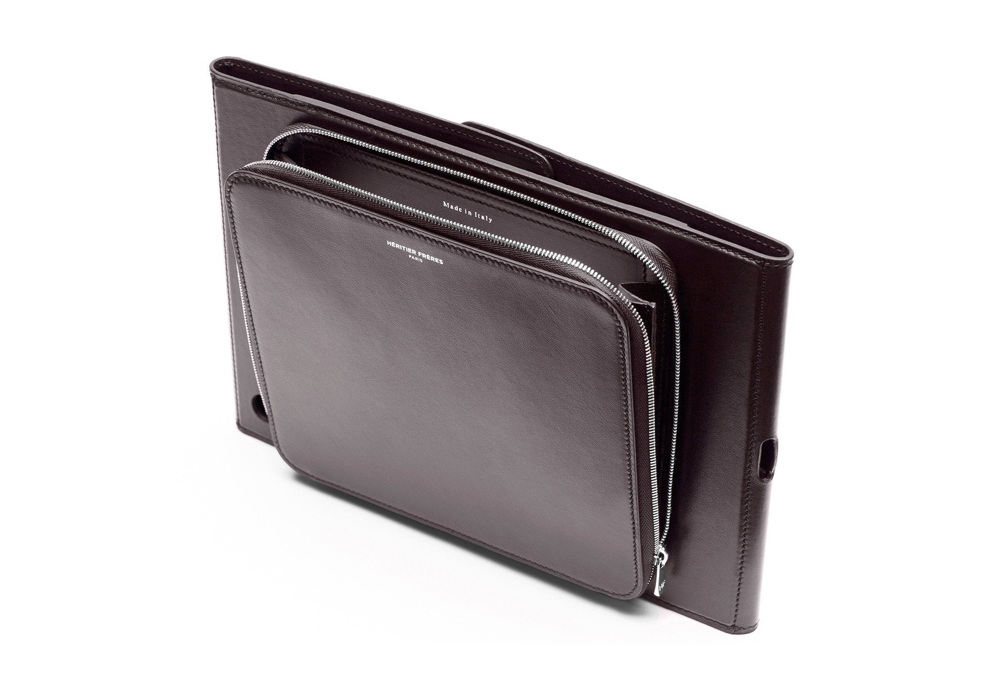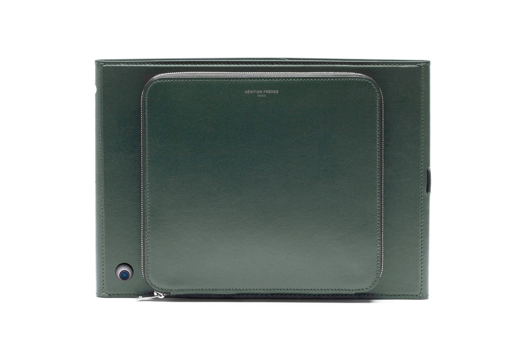 Le design de cet étui, dont le concept a été développé et déposé par Héritier Frères, peut selon votre préférence, être positionné en lecture verticale ou horizontale de la tablette. La grande et à la fois discrète pochette arrière, est prévue pour les incontournables du quotidien.